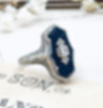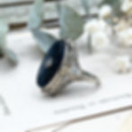 Vintage Art Deco Style Cocktail Ring with Black Glass & Marcasite in Silver