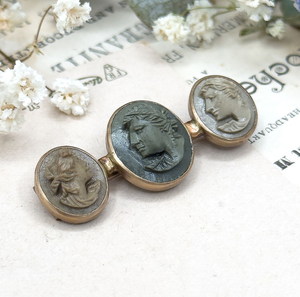 Victorian Lava Cameo Trio Bar Pin Brooch