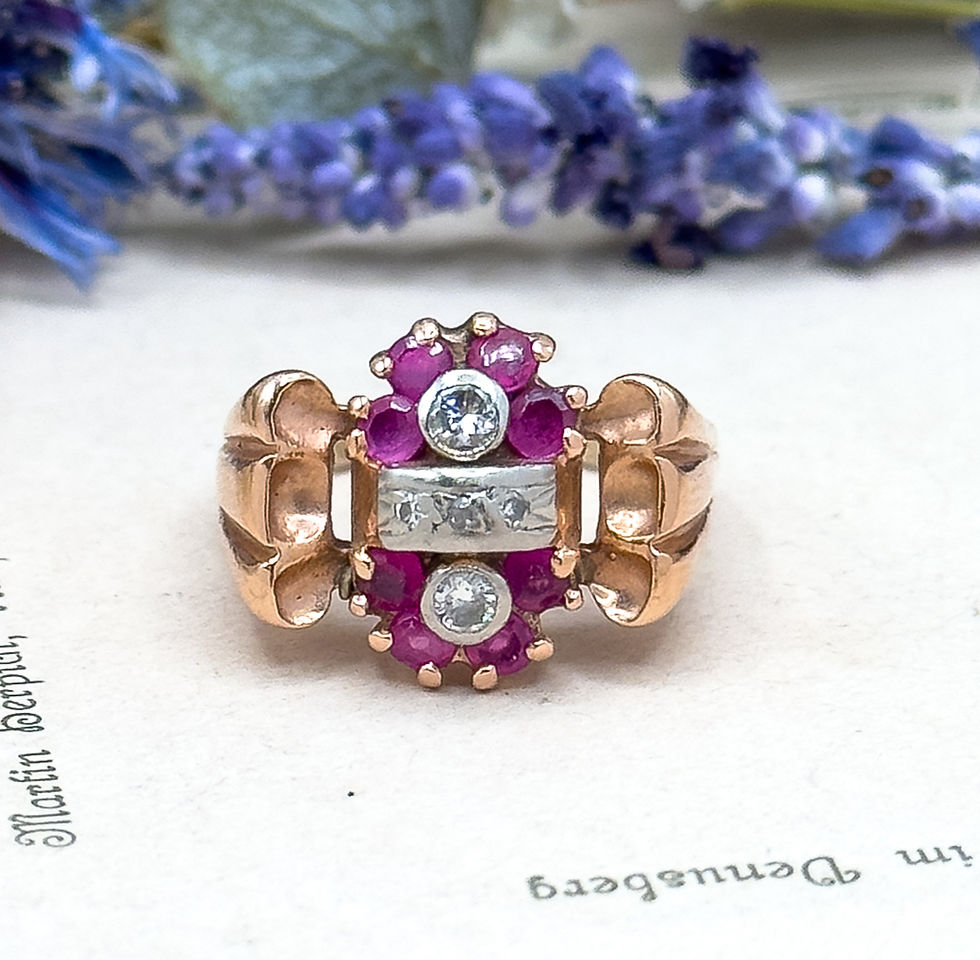 Retro Era Ruby & Diamond Ring in 14K Rose Gold